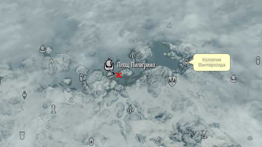 Отправляйтесь к юго-западу от гробницы Исграмора или на запад от Коллегии Винтерхолда на маленький островок. Он находится совсем недалеко от воды. Ориентируйте на статую Талоса. Когда вы подойдете к нужному месту, сундук появится.