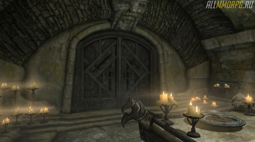 Вторая часть подземелья порадует вас новыми противниками – нежитью под названием драугры, что при жизни были нордами, а теперь покинули свои могилы. В помещении с этими врагами вы можете найти нажимную пластину, которая активирует дверь с шипами. Если с драуграми возникают трудности, просто заманите их к двери и сами встаньте на пластину.