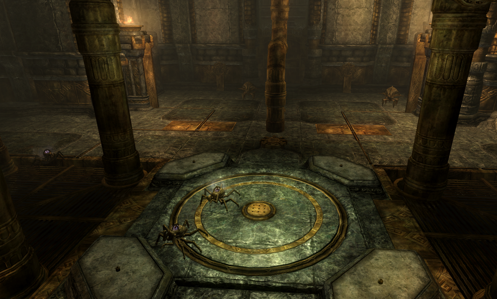Один из механизмов находится в воде под мостом (бывает, что кости валяются на земле возле механизма, а не в нем самом; берите эти кости как обычно бы сделали). По правую руку, когда войдете в комнату, под другой шестерней увидите еще часть кости. Два оставшихся куска лежат в дальних углах. Когда опускаете мост вы высвобождаете двемерского центуриона. Если мост активировать повторно, когда центурион находится на нем, то мост подбросит центуриона к потолку, а, падая вниз, тот может разбиться.