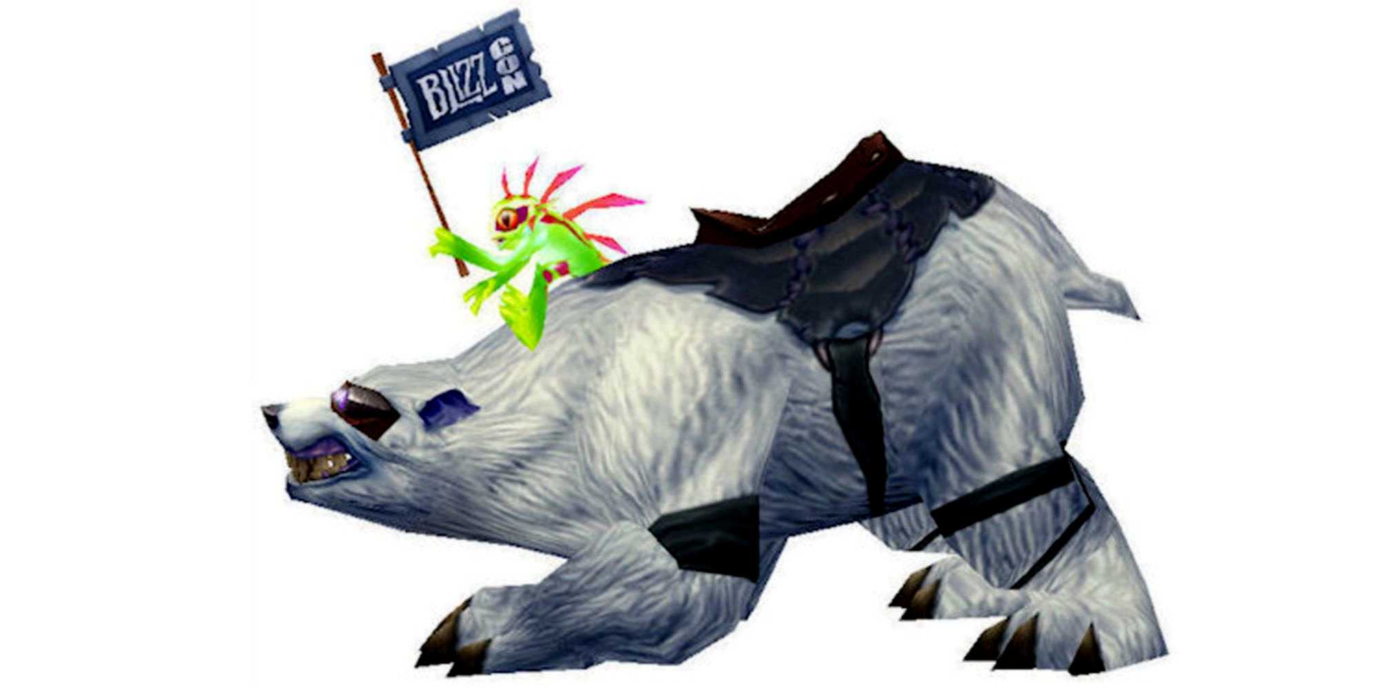 Это крепление доступно только в розничной версии WoWПо крайней мере, пока, но в будущем ситуация может измениться, если их станет больше. Возможно, это один из самых редких маунтов во всей игре, доступный только по промо-коду, который выдавался участникам Blizzcon 2008, когда вышло оригинальное расширение. Согласно легенде, многие из тех, кто получил эти коды, предвидели, насколько ценными они окажутся, и никогда не использовали их, предпочитая продать. Крепление выглядит как белый медведь, а в качестве дополнения к нему прилагается украшение на капюшон мурлока, который держит флаг BlizzCon.