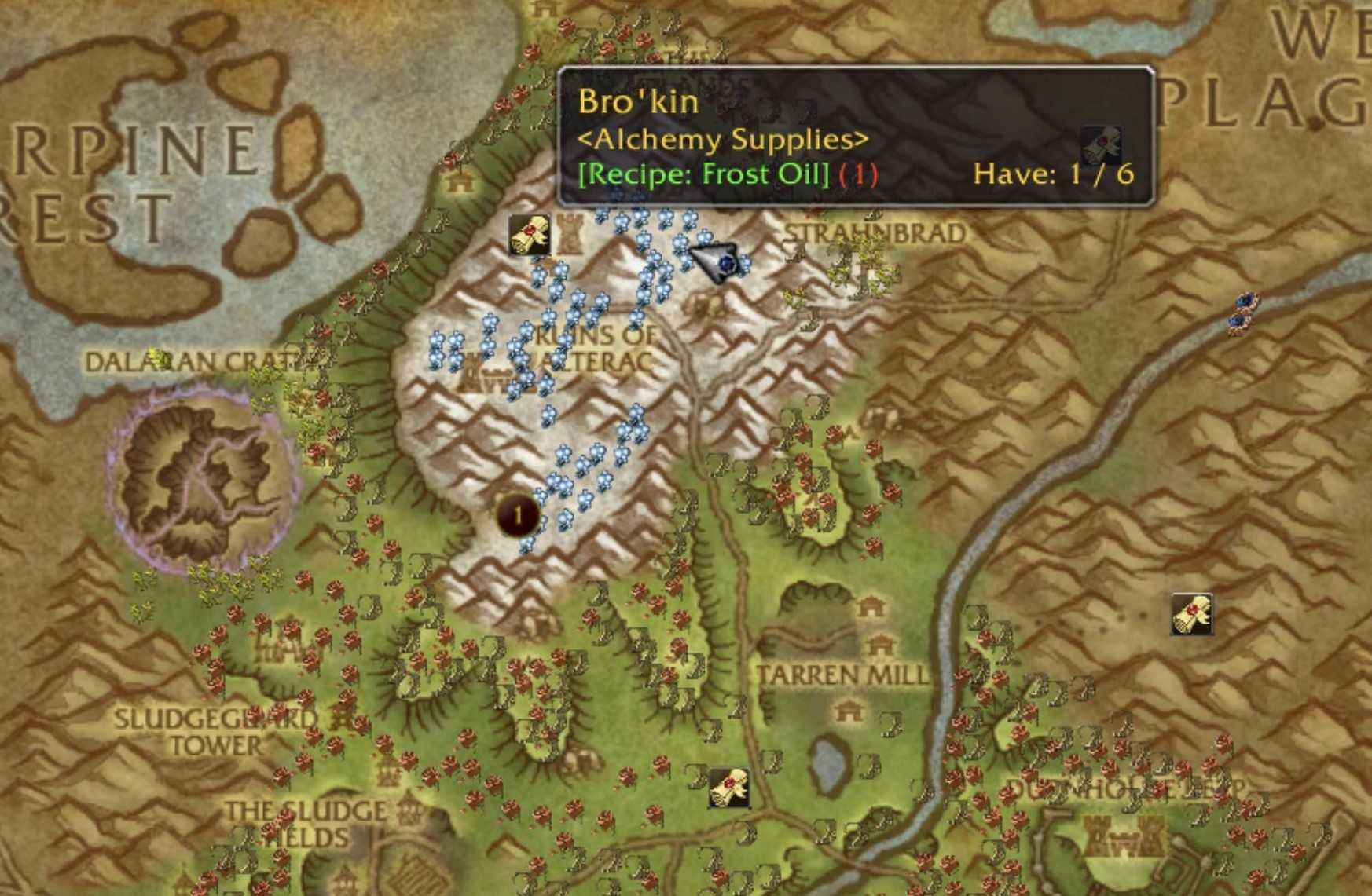 GatherMate2 Classic – map markers for gathering nodes. Adds markers on world map for nodes of gathering professions.