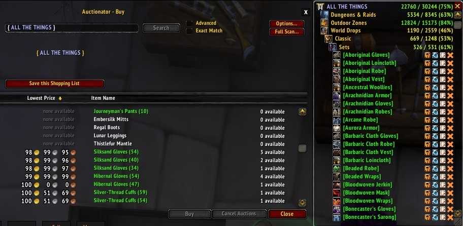 ATT отображает два центральных списка. Их можно свободно перемещать по экрану, изменять их размер и закрывать. Мы предлагаем вам SHIFT + щелкнуть заголовок ALL THE THINGS, чтобы принудительно обновить вашу коллекцию при первой установке. Это также хорошая идея делать это довольно регулярно, особенно если у вас есть проблемы с элементами, которые отображаются как не собранные, когда вы знаете, что они у вас есть. Иногда Blizzard не обновляет вашу коллекцию автоматически, что вызывает проблемы с отслеживанием.