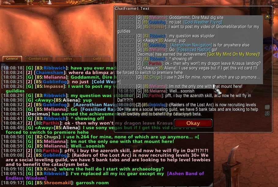 With this simple addon, you will be able to set up your chat the way you want it to be. The addon includes most of the features you can think of: timestamps, different colors per class and level, changing fonts, text and URL copying, chat search, and many others.