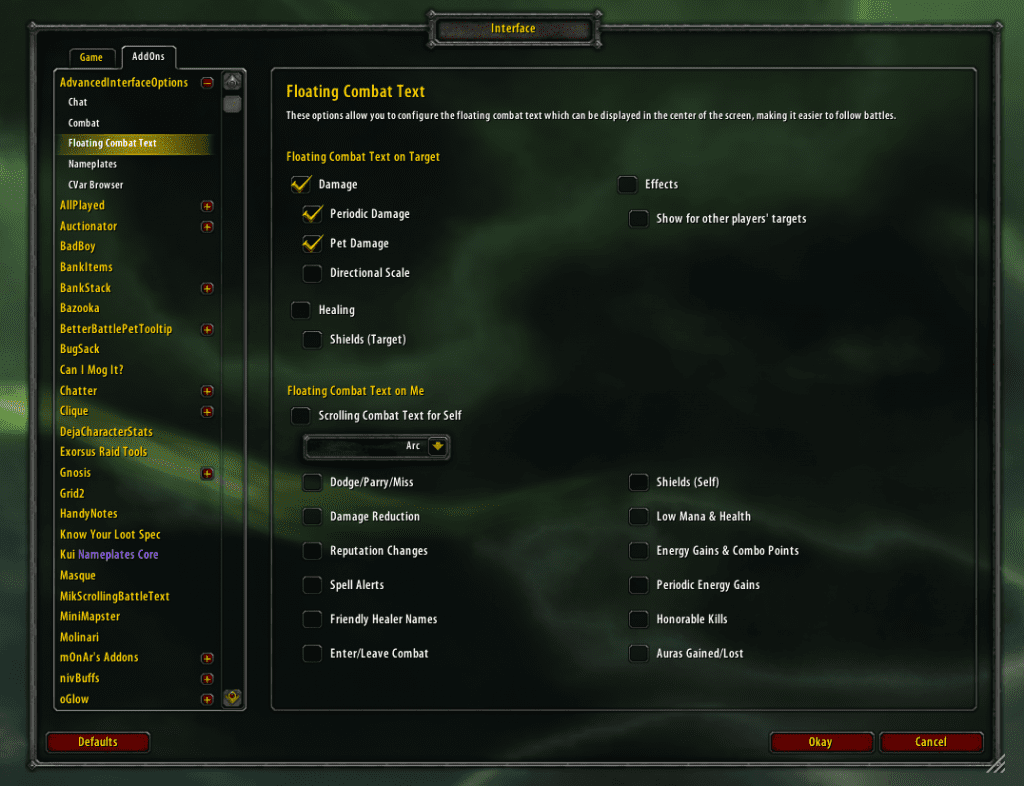 - Уберите Scrolling Combat Text, так как он расходуется.