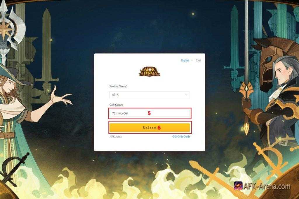 - В поле 5 указываем промокод AFK Arena, который вы знаете;