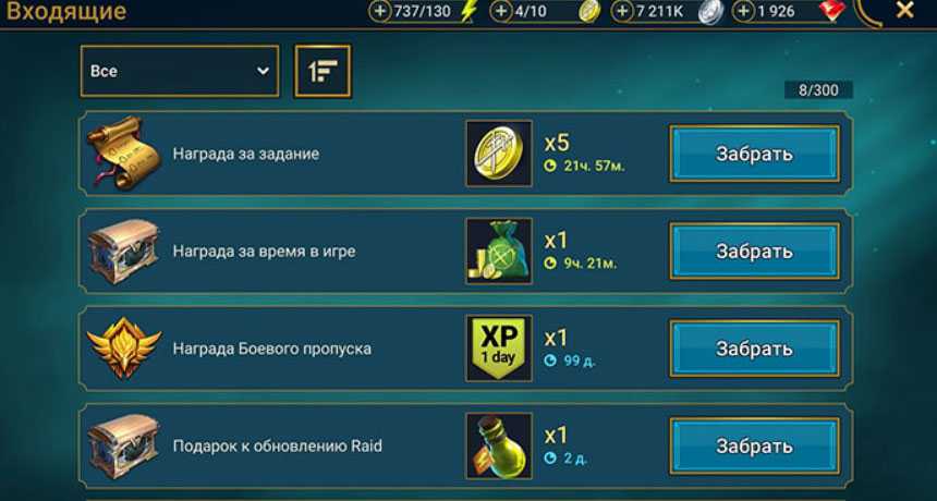 RAIDZIMA – дает 100 серебра, энергию и две книги для улучшения редких персонажей.