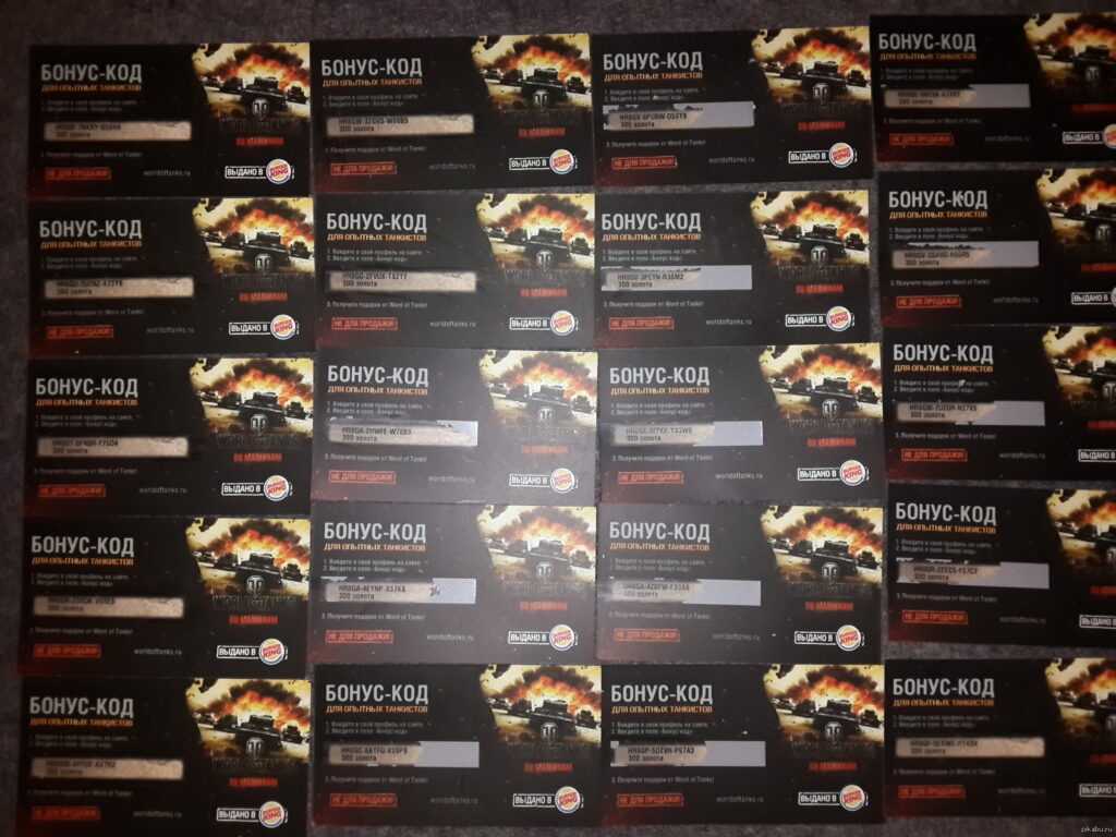 Бонусные коды могут использовать все, у кого есть учетная запись WoT. Эти коды могут быть использованы только один раз на человека. Вы можете найти подобные коды при покупке рекламных товаров, участии в специальных мероприятиях или по рекламным ссылкам, выпущенным Wargaming.
