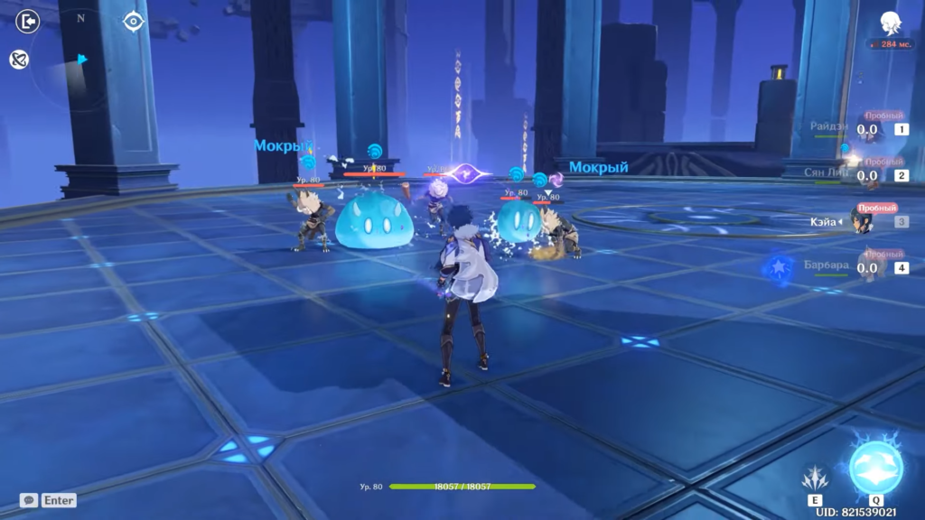 Ротация со взрывом стихии против двух крупных врагов, когда взрыв стихии задевает обоих и на каждого приходится по 3 Цветка неизбежности (от Q). В этой ситуации всё ещё лучше собирать защиту (даже если короновать взрыв стихии).