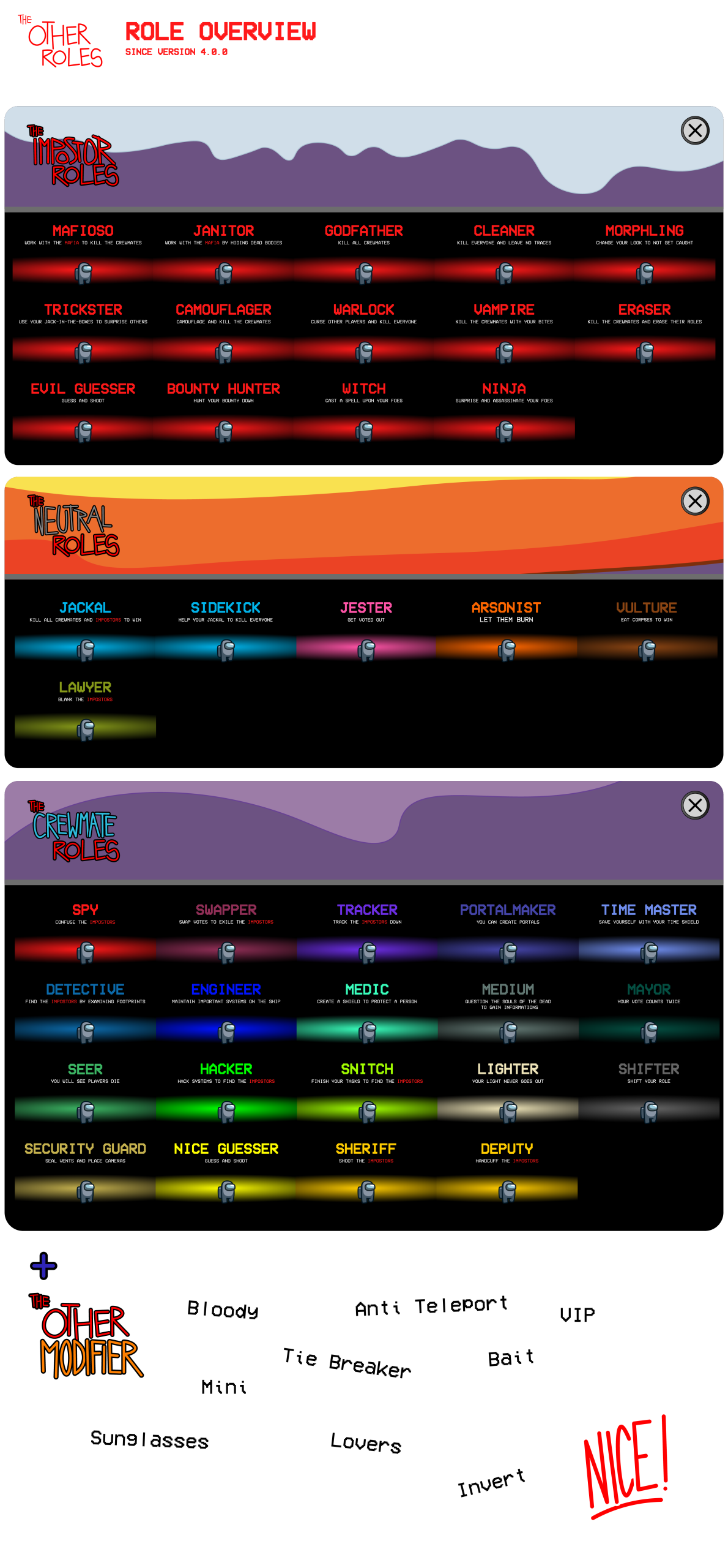 This is a huge overhaul of Among Us, containing a ton of roles with new ones added all the time. New roles include Evil Genius, Mafioso, and Ninja. It’s wild.