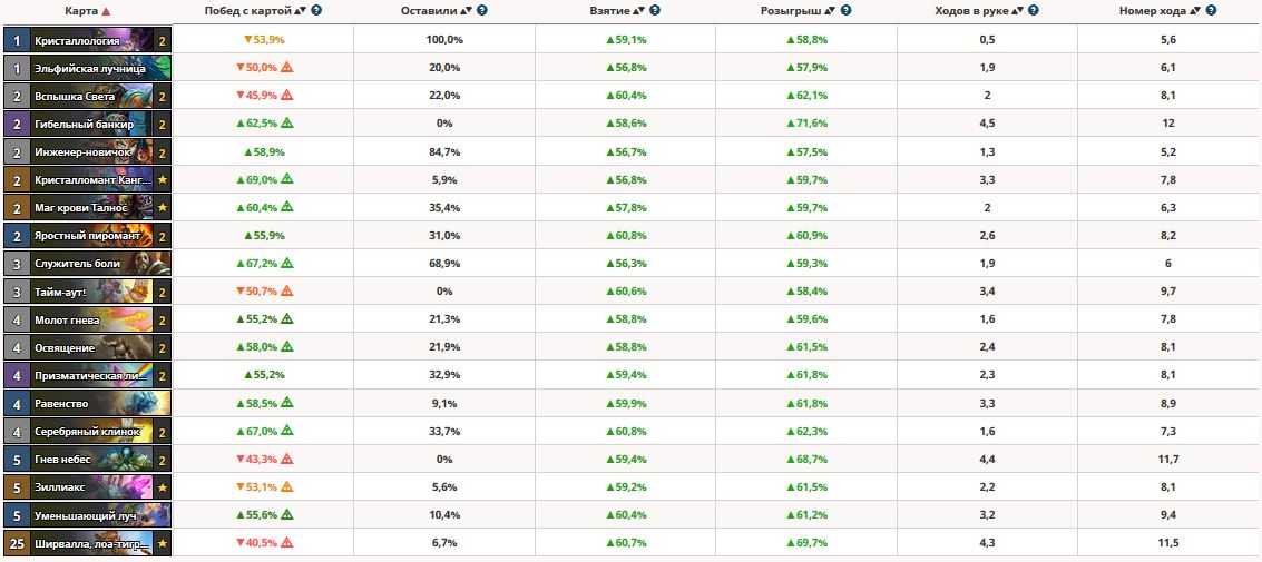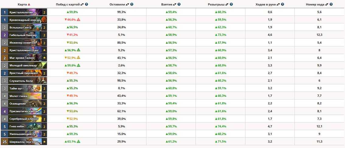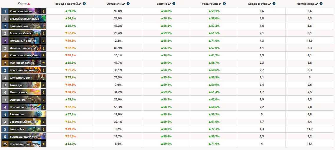 В начале игры стоит использовать более дешевые карты с очками маны для контроля поля боя. Если заранее закладывать контроль, то паладин без проблем достигнет поздней игры, где мы можем использовать более сильные карты контроля поля боя.