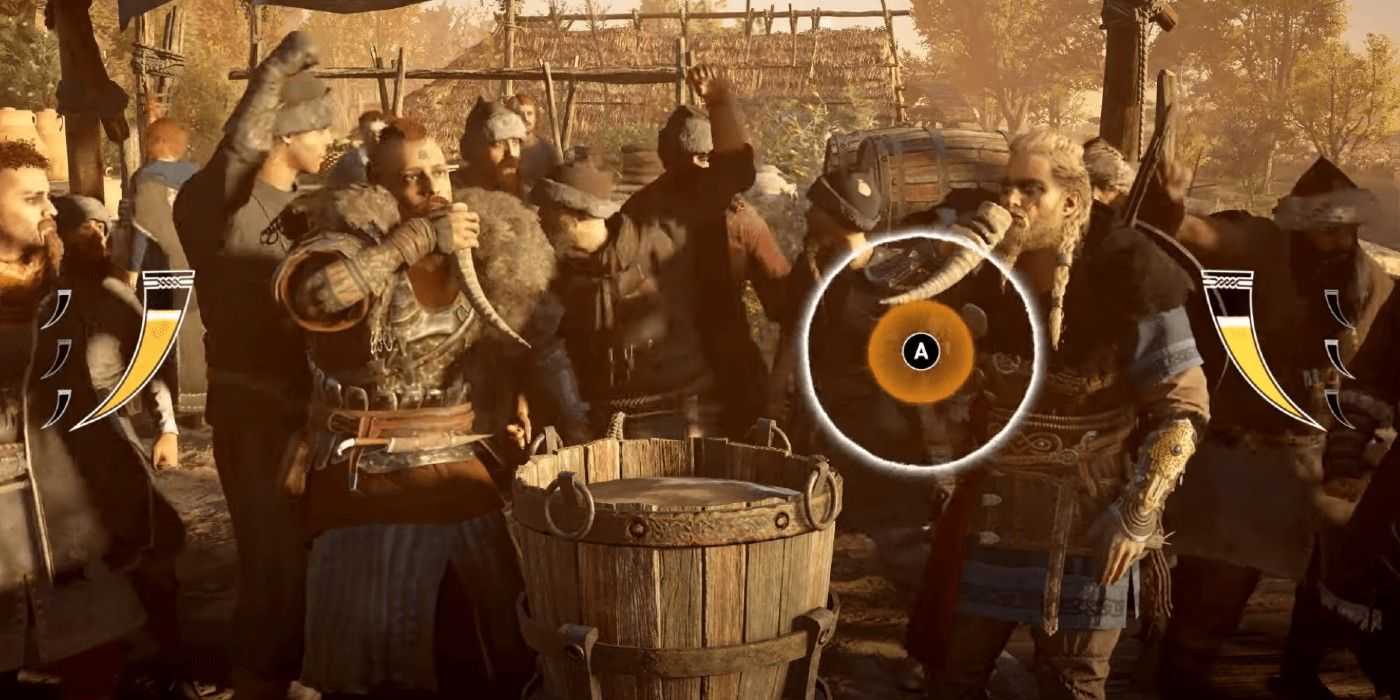 Есть множество побочных действий, в которых можно заблудиться, исследуя различные города и деревни мира. Валгалла. Одной из самых забавных является игра с выпивкой, в которой Эйвору нужно как можно быстрее отполировать несколько напитков из рога. Это делается путем нажатия кнопки подсказки в заданном ритме и ответа на подсказки направления, чтобы оставаться в равновесии, когда начинается опьянение.