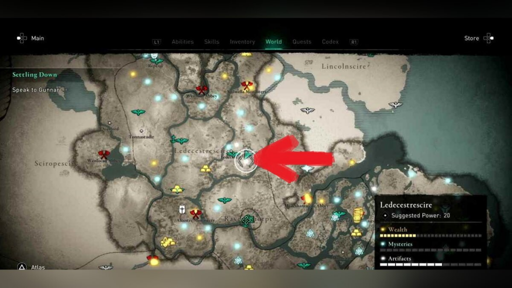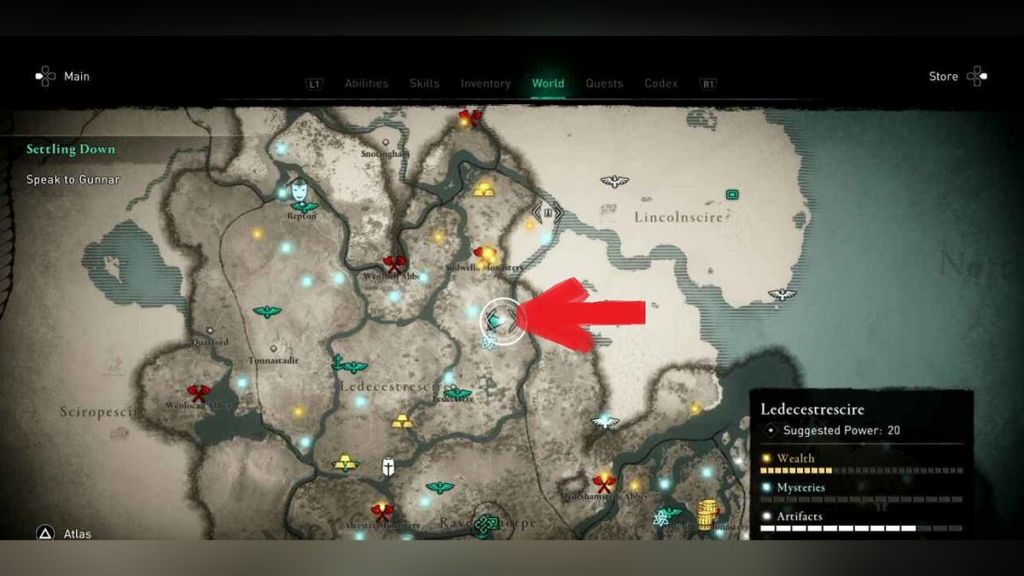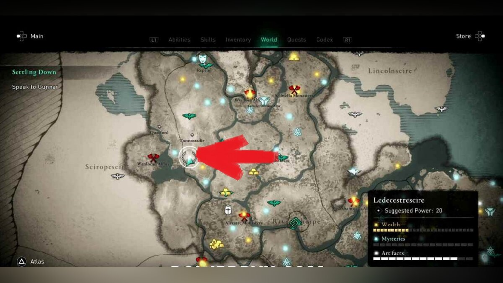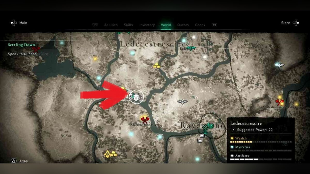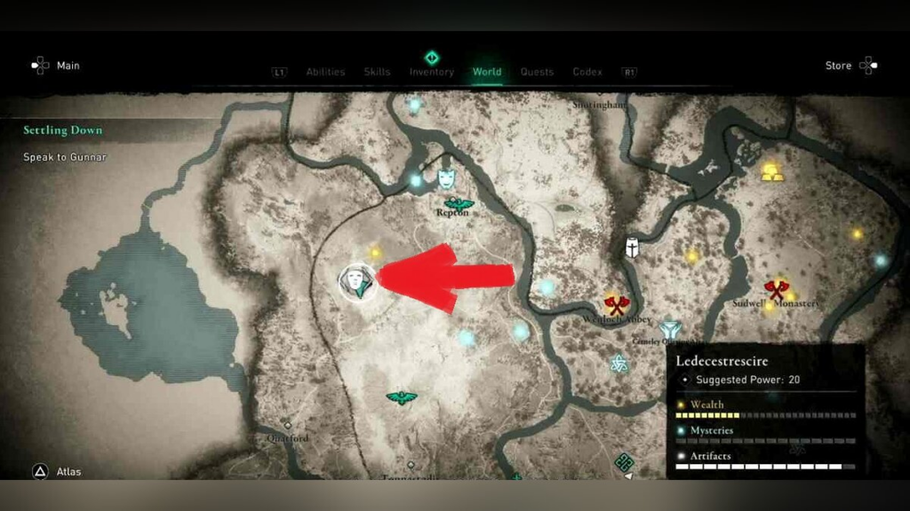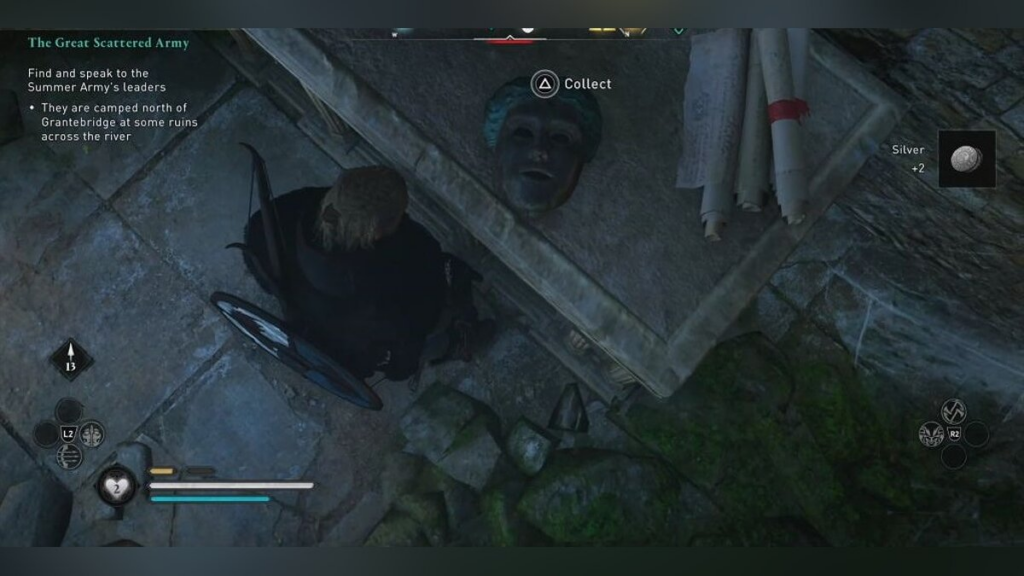 На юго-востоке от города Ледечестер есть руины. Найдите статую и сломайте деревянный пол рядом с ней. Спускайтесь вниз и бегите вперед. В дальнем конце коридора вы увидите каменную фигуру. В ее руке лежит римский артефакт.