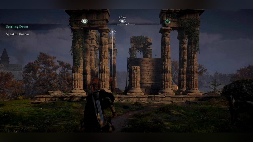 Область вокруг монумента с фрагментом относительно безопасна, а вот ведущая к нему дорога полна всевозможных угроз. Если вы хотите дойти до него, то вам предстоит вначале двинуться на юг и пробраться мимо множества противников в лагере Стражей (Guardians Garrison camp), находящемся в середине локации. Далее пробегите по «мосту», представляющему собой огромную цепь. Необходимый предмет и место благодати будут находиться на противоположной стороне.