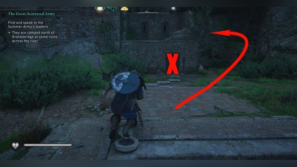 Отправляйтесь на север от города Ледечестер к руинам. На правой стороне вам нужно найти лестницу. Поднимайтесь по ней, берите в руки вазу и кидайте ее на обломки, чтобы пробить пол. Спускайтесь вниз и забирайте артефакт.