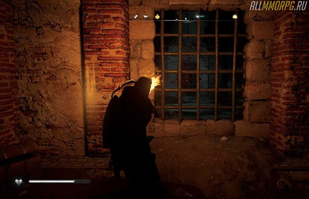 Взяв ключ, плывите к тому место, где вы спрыгнули. Выбирайтесь из воды и открывайте дверь, которая находится слева от персонажа. За дверью будет комната. Справа в ней расположена решетка, закрывающая проход в еще одно помещение. Чтобы открыть решетку, воспользуйтесь прицелом Одина и разрушьте красный луч с помощью стрелы. Если вы потратили все стрелы на взрывание кувшинов, возьмите их в задней части комнаты, где вы сейчас находитесь.