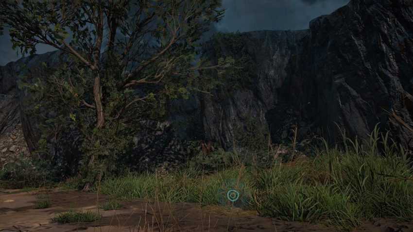 Прибыв в указанную точку, осмотритесь и найдите деревянную конструкцию, увитую растениями, которая выглядит как круглый забор. Как это выглядит, смотрите на изображении ниже.
