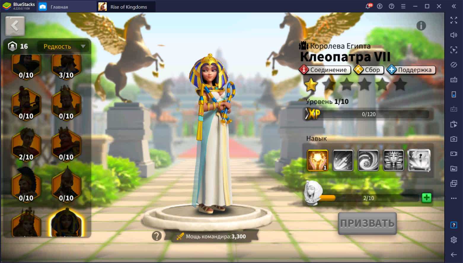 Еще один легендарный командир с выраженными навыками сбора. Она также дает до 50% бонуса к нагрузке войск и повышает скорость добычи камня на 5-30%, а остальных ресурсов — на 3-20%. Клеопатра будет получать дополнительный набор полезных предметов после окончания сбора ресурсов, когда вы откроете ее пятый навык.