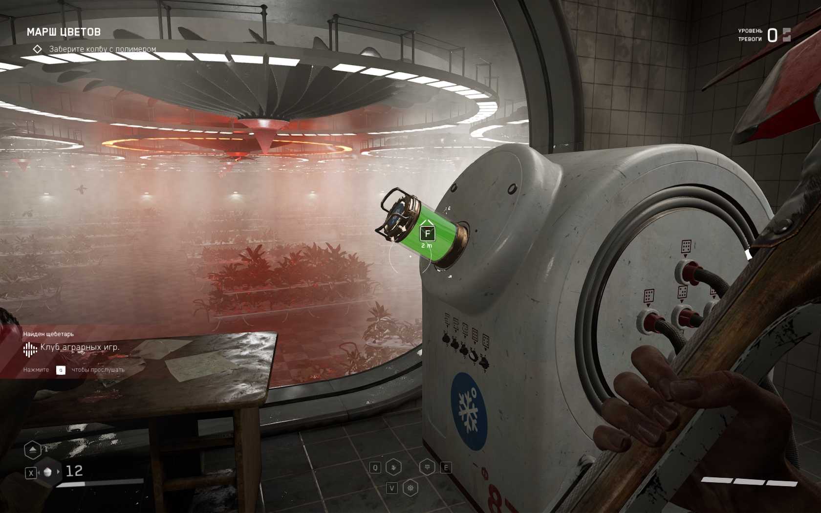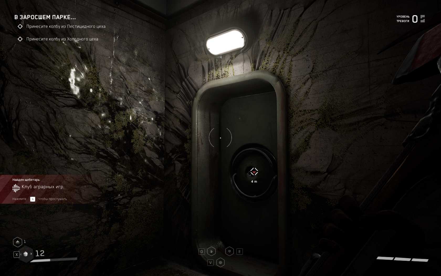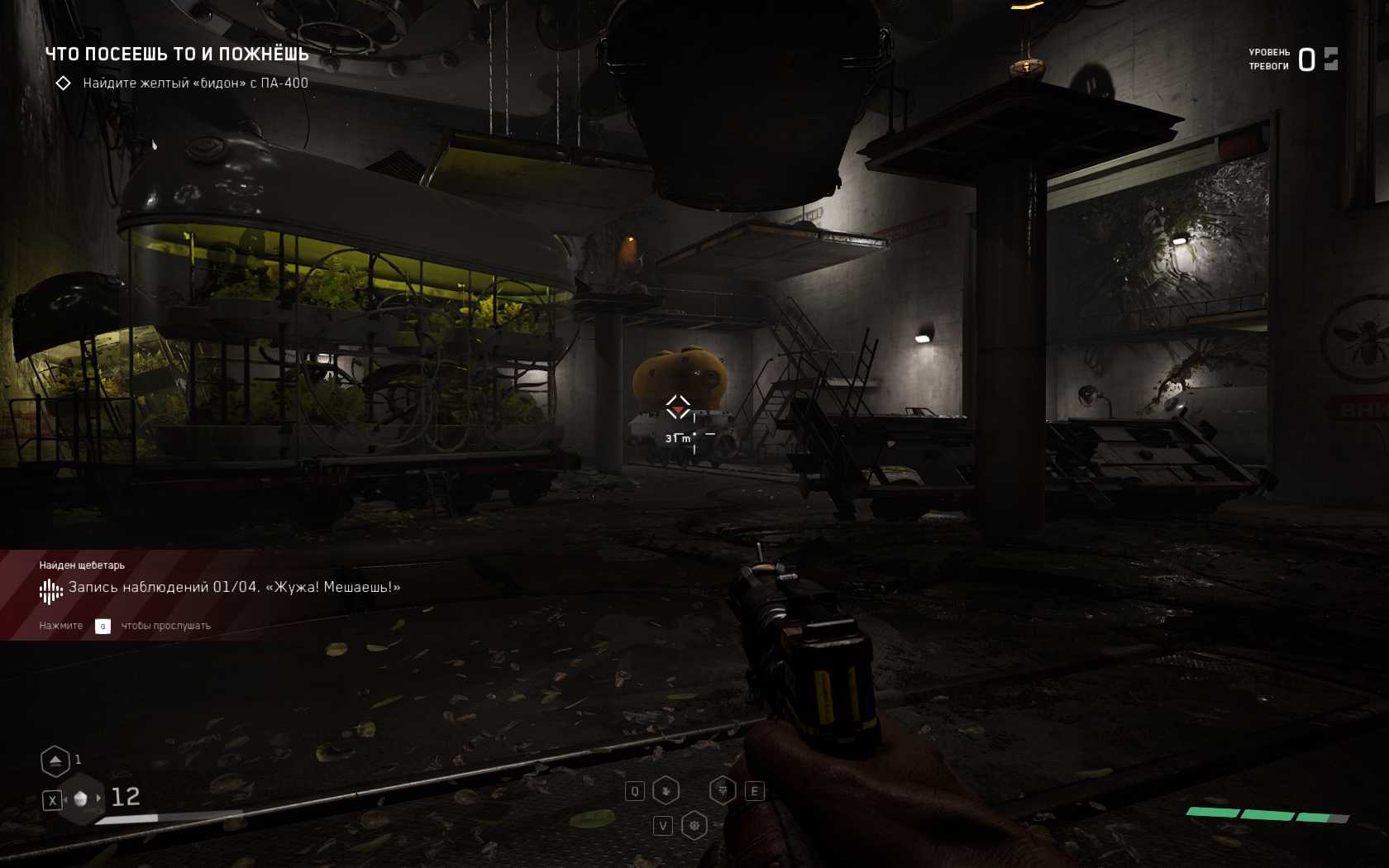 После того, как вы откроете дверь, запустится кат-сцена, в которой на главного героя нападет работник Пестицидного цеха. Он скажет, что скоро огромный куст (Борщевик) в центр зала проснется и когда это произойдет, всем мало не покажется. Мужчина попросит отыскать желтую цистерну с ПА-400. Она поможет уничтожить Борщевик.