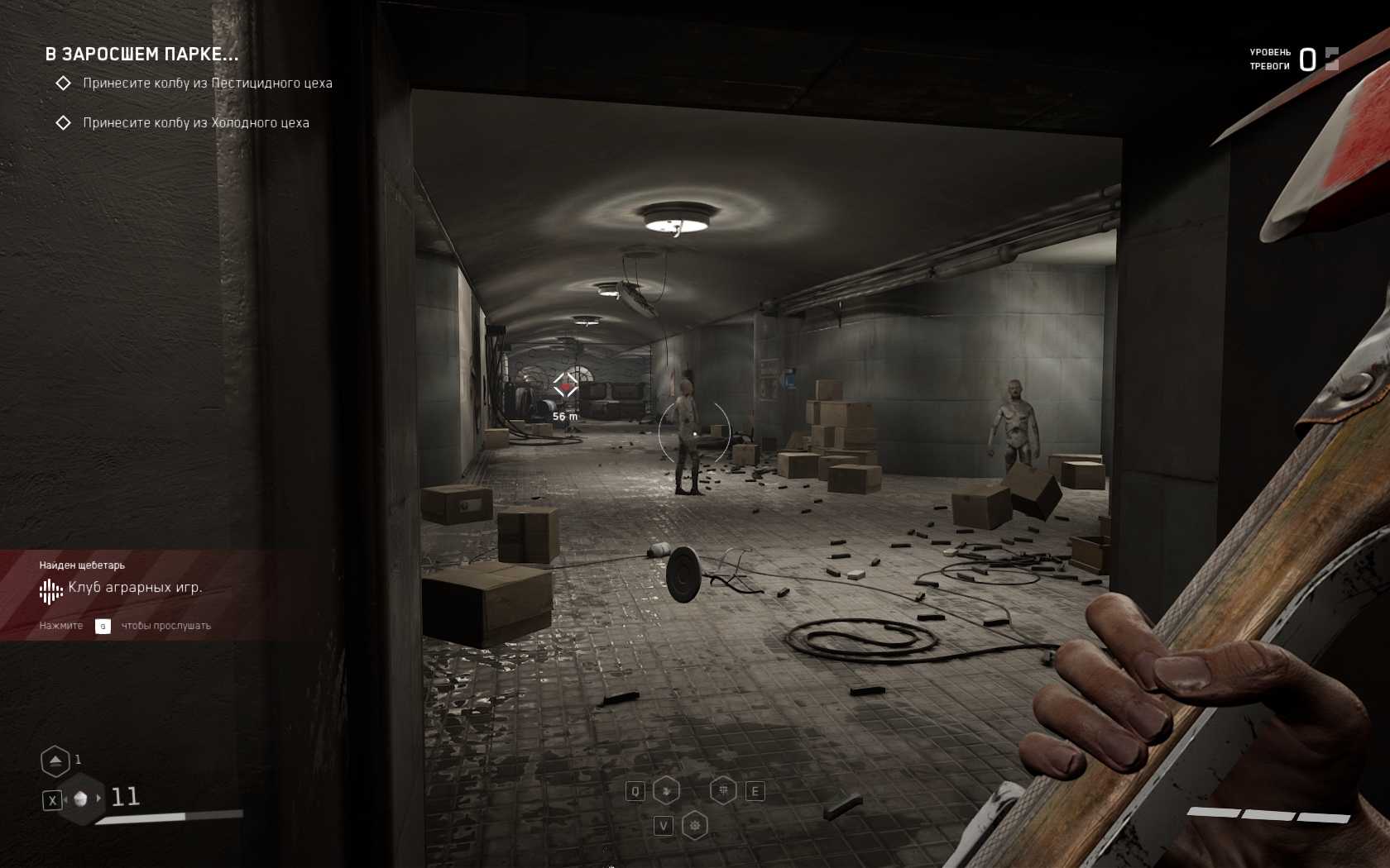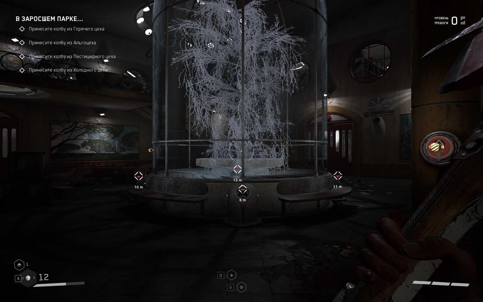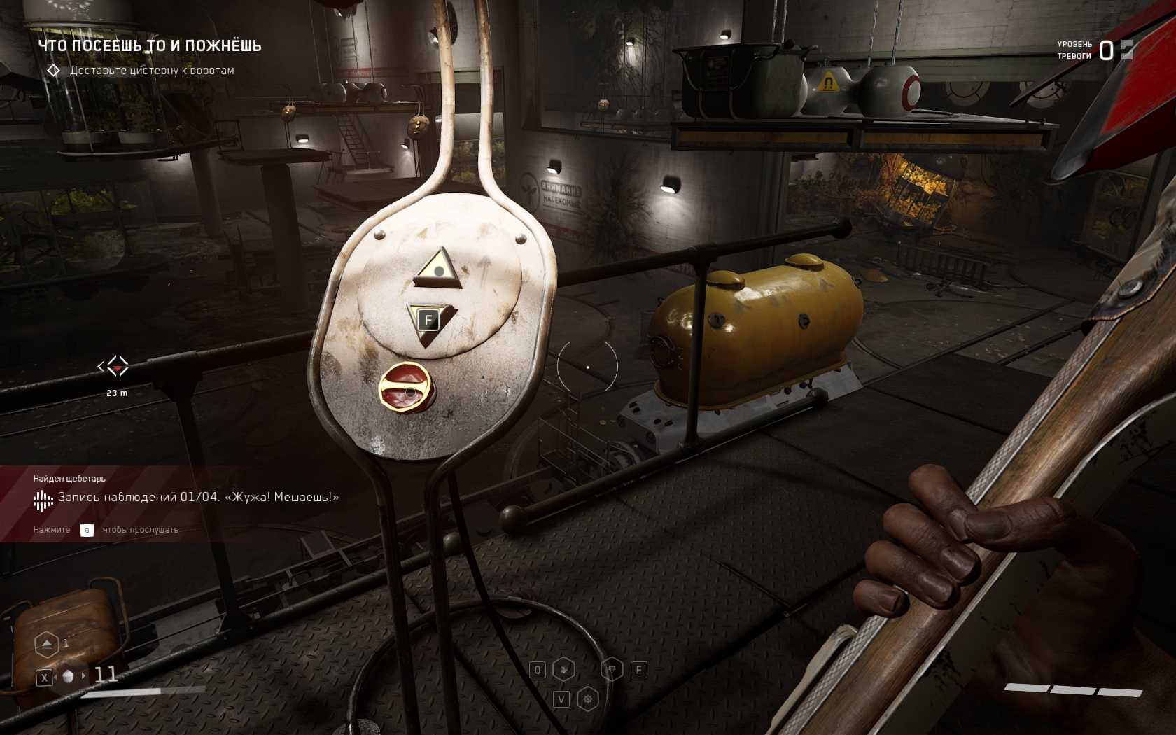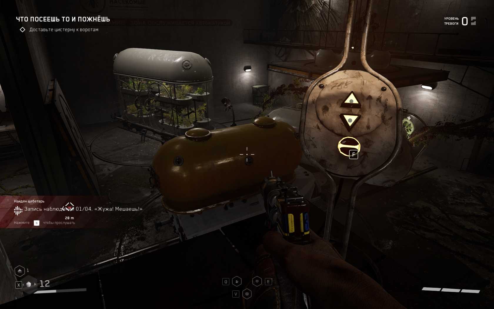 После того, как вы откроете дверь, запустится кат-сцена, в которой на главного героя нападет работник Пестицидного цеха. Он скажет, что скоро огромный куст (Борщевик) в центр зала проснется и когда это произойдет, всем мало не покажется. Мужчина попросит отыскать желтую цистерну с ПА-400. Она поможет уничтожить Борщевик.