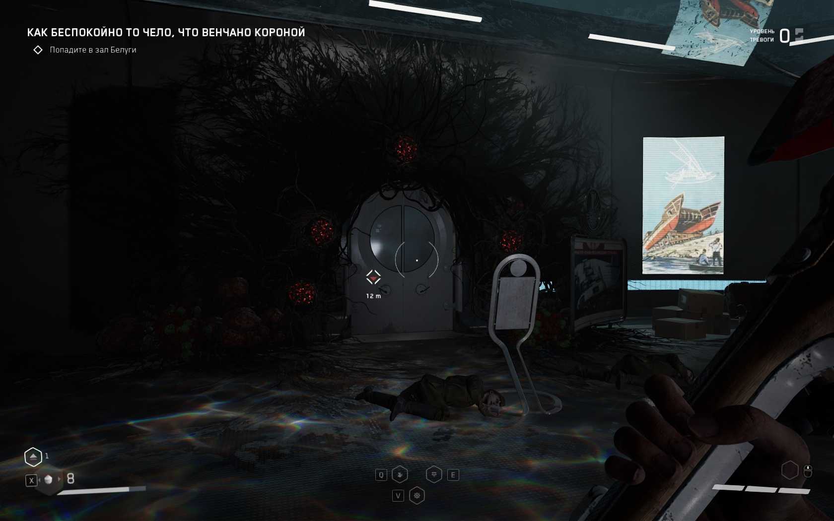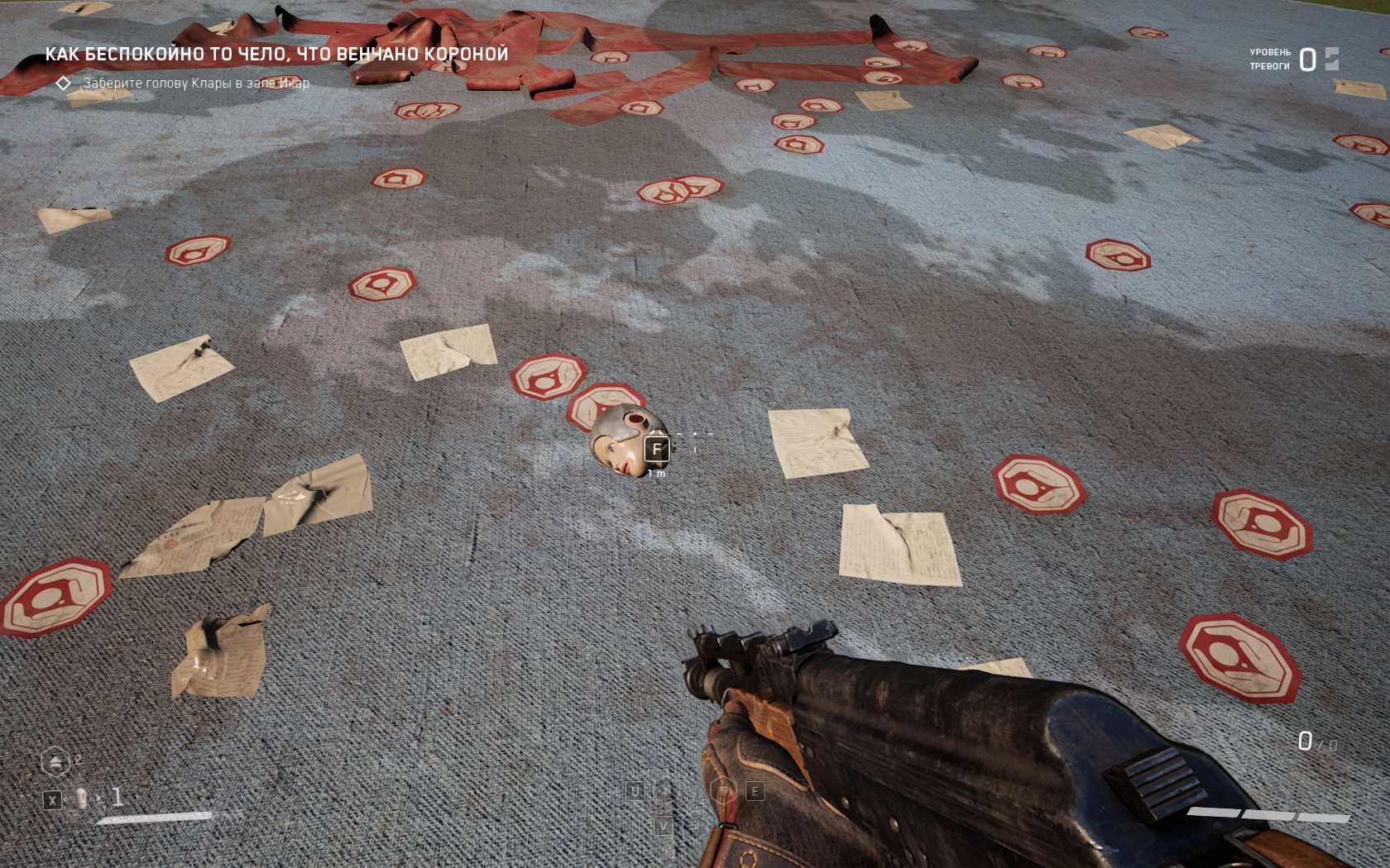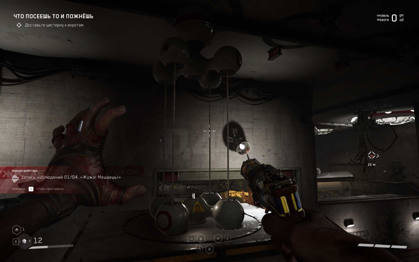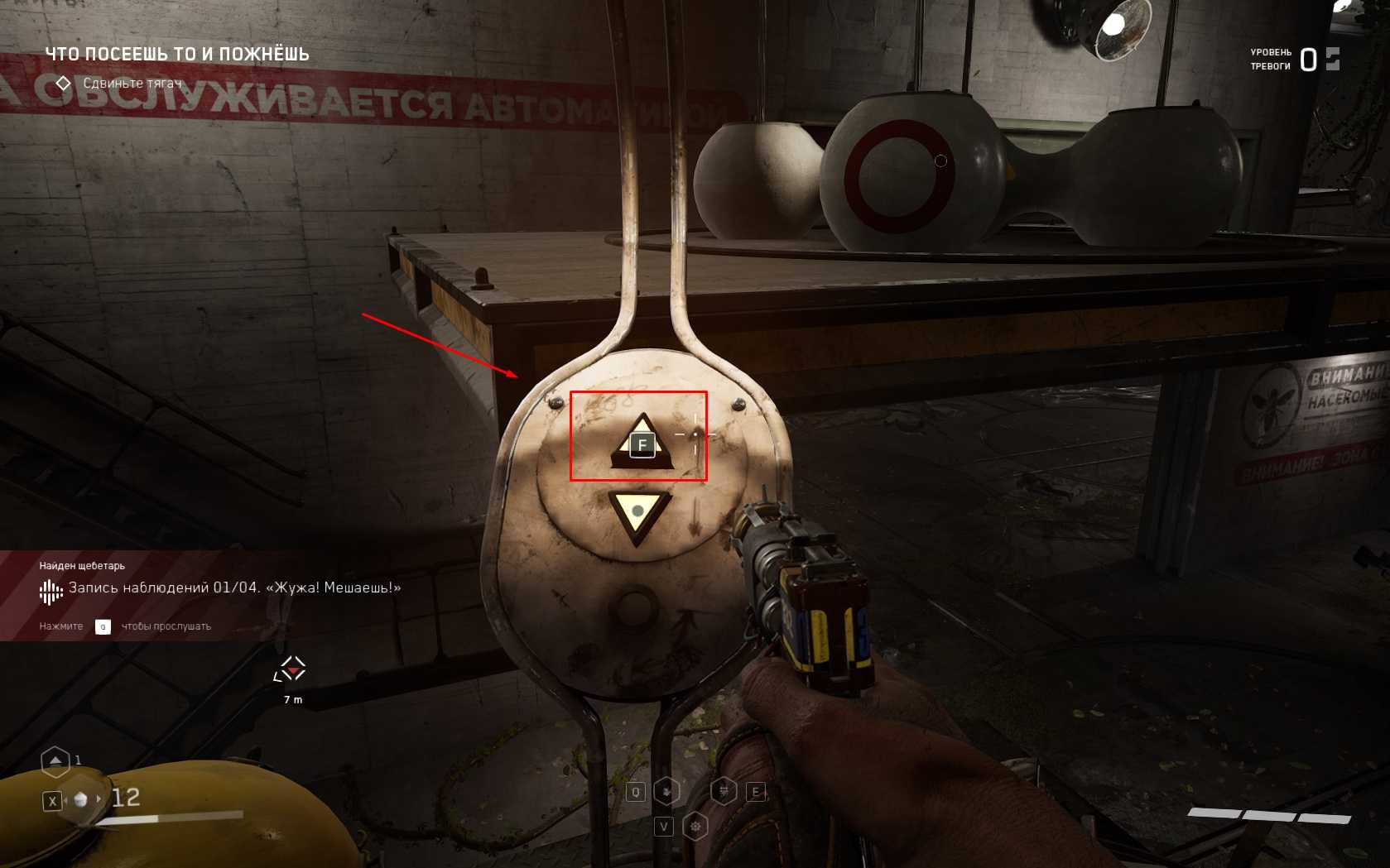 Двигайтесь по коридору до цеховой лаборатории. Возле одной из огромных ванн с красной жижей лежит «Щебетарь №71». Вам нужно добраться до ворот, на которые указывает квестовый маркер. Как только вы приблизитесь к ним, запустится видео-ролик. В нем нам покажут процесс передачи головы Петрова Штокхаузену и Ларису Филатову. После взрыва гранаты у главного героя снова начнутся видения.