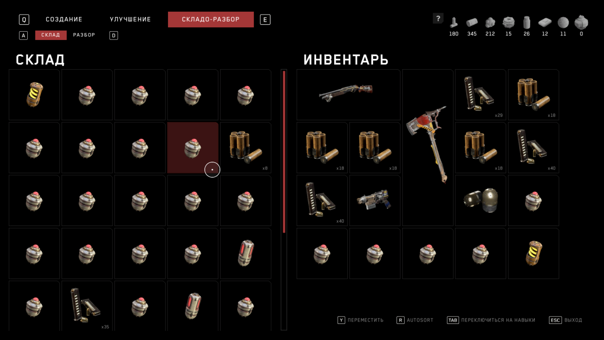Наконец, не забывайте проверять склад. Открыть его можно через робота ЭЛЕОНОРа. Склад – это хранилище вещей, которые не поместились в инвентарь. Все ненужные предметы можно разобрать. Это поможет не только освободить место, но и получить ресурсы. А те в свою очередь пойдут на улучшения оружия.