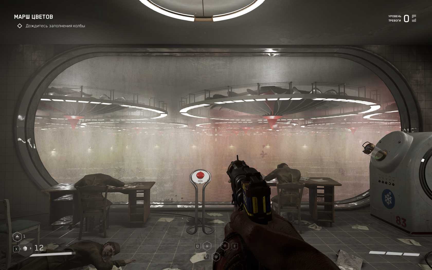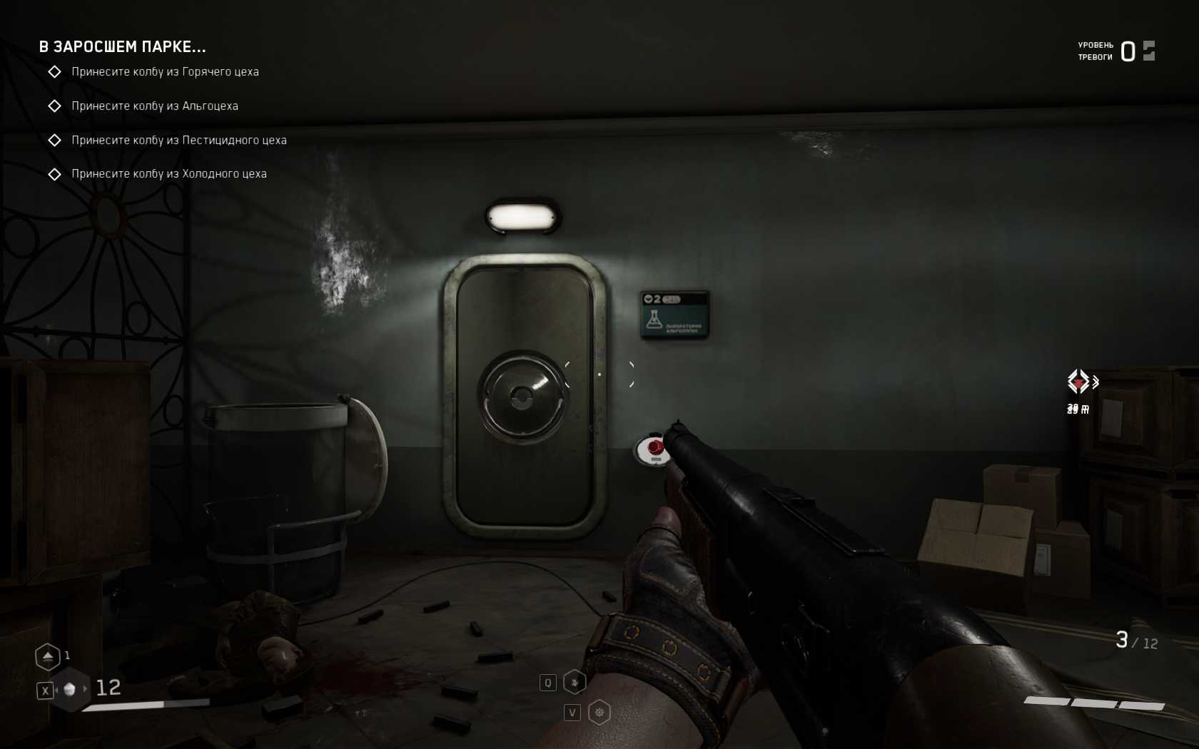 Выйдя из безопасной комнаты, подойдите к двери напротив и нажмите красную кнопку под табличкой «Лаборатория альгологии».