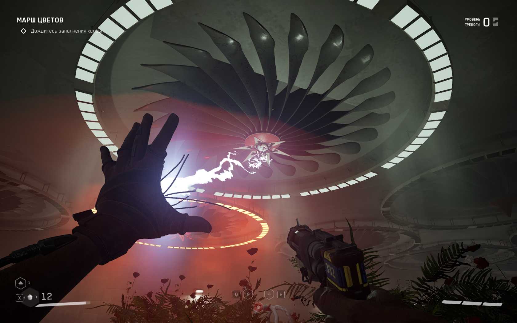 Нажмите на кнопку возле окна и ждите, пока колба наполнится веществом. Периодически вентиляторы в зале будут отключаться. Когда это произойдет, вам нужно выйти из кабинки управления и ударить каждый подсвеченный вентилятор способностью «Шок», чтобы запустить его. В этот момент вас будут атаковать Побеги и мутанты. Отбившись от них, вернитесь в кабинку управления и нажмите кнопку снова.