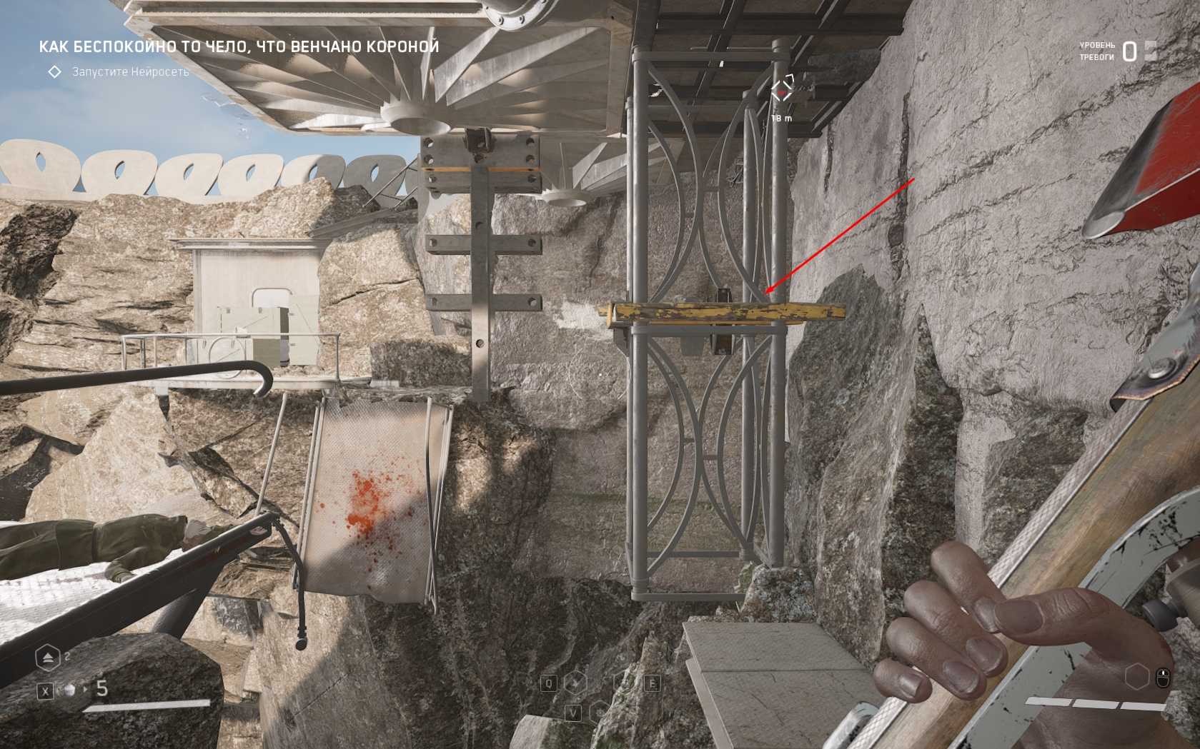 При прохождении задания «Виктор Петров. Найти и обезвредить», которое идет до миссии «По горячим следам», вам нужно будет поговорить с трупом о том, как попасть в фуникулер. Он посоветует вам найти техника, занимающегося канатной дорогой. Пройдите через дверной проем назад в туннель, обогните ворота, и вы отыщите нужное мертвое тело.