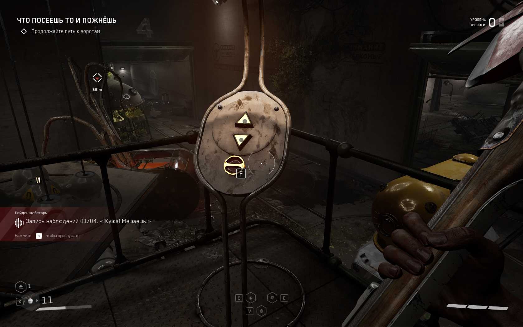 Выйдя из лифта, заберите справа на тумбочке у стены еще один «Щебетарь №68». Продолжайте идти, но будьте внимательны, впереди вас ждут монстры, включая Плюща. Оказавшись в морге, доберитесь до противоположной стороны зала, обходя взбесившихся погрузчиков, и поднимитесь по лестнице на следующий уровень.