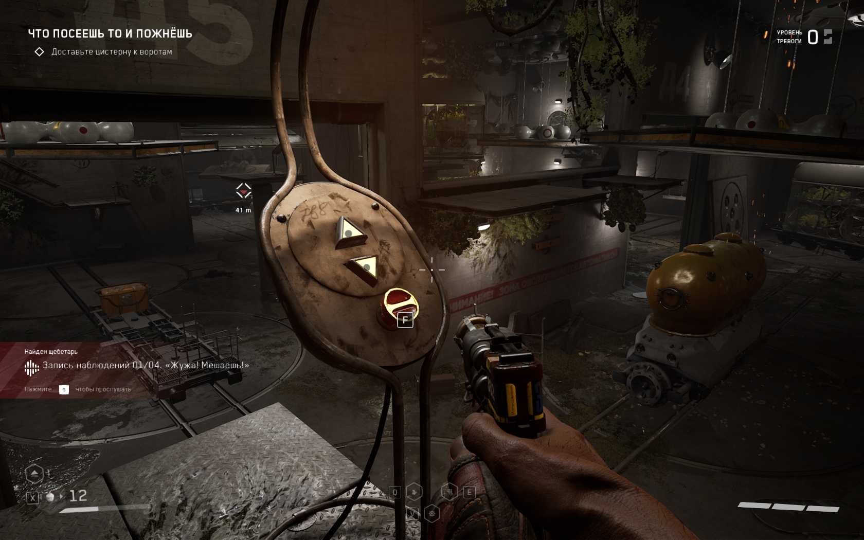 Вам придется разгадывать ее в рамках задания «Что посеешь, то и пожнешь», действия которой происходят в Пестицидном цехе. Необходимо будет двигать тягач с желтой цистерной по рельсам, используя специальный пульт управления. Основная сложность же заключается во множестве багов. В отдельном материале мы рассказали, как доставить «бидон» до нужных ворот и исправить большинство ошибок.