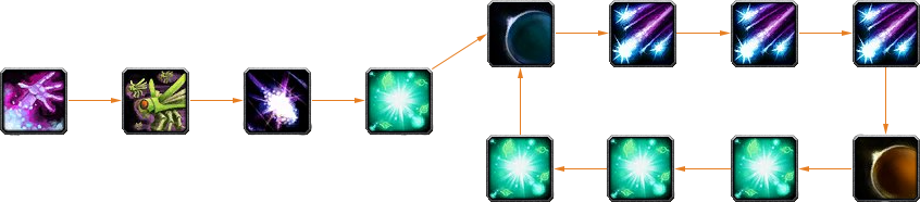 В начале сражения вешаем Волшебный огонь, Рой насекомых и Лунный огонь, после чего начинаем раскаст Гнев до прока Лунного затмения, как только оно прокнет, переключаемся на Звездный огонь и кастуем до прока Солнечного затмения и переключаемся вновь на Гнев. Обновление дот я описывал чуть выше, в какие моменты их нужно обновлять или вешать, без потери в ДПС. Ротация не сложная, легко запомнить.