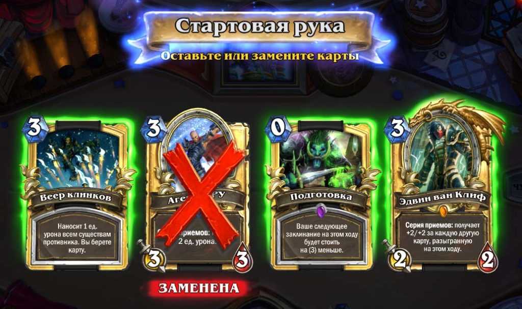 Для ведения конкурентной борьбы против каждого из классов, мы предлагаем вам следующие карты для выбора в стартовую руку. В случае, если ни одной из нижеприведённых карт у вас нет, следует действовать по ситуации, с учетом того, против какого класса вы сражаетесь.