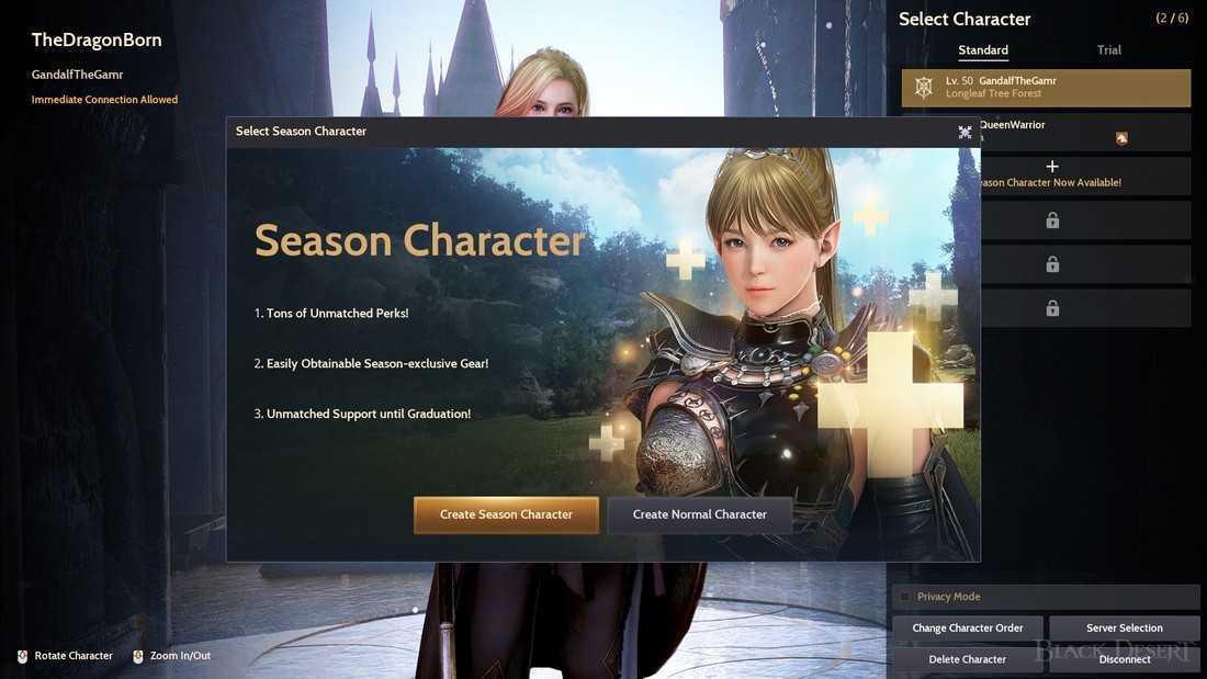 Если на момент регистрации активен сезонный сервер, лучше сделать сезонного персонажа. Это дает определенные преимущества: