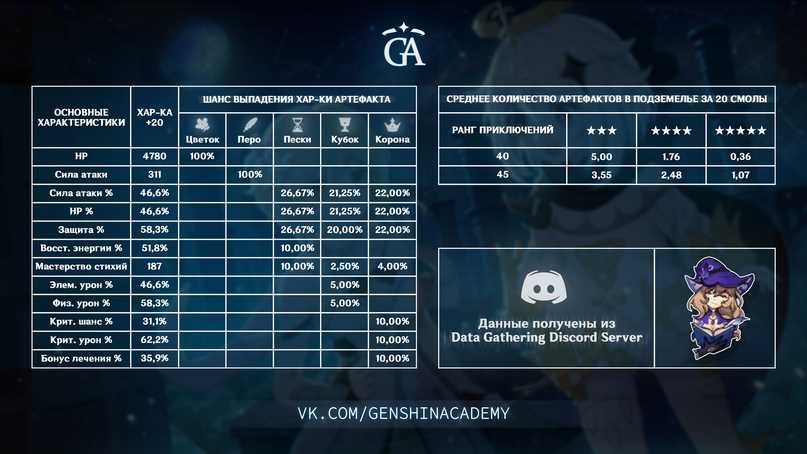Обратите внимания, что изложенные выше принципы действительны в поздней игре (Ранг Приключений 45+), когда у вас есть возможность активно фармить артефакты (на этом ранге у вас откроется возможность проходить подземелья, за которые гарантированно падают 5* артефакты).
