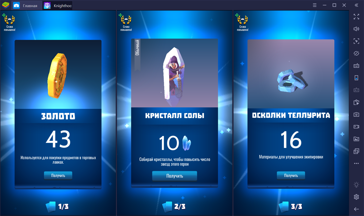 - Кристаллы. Содержат осколки героев. Подробнее о них вы можете почитать в гайде по героям;