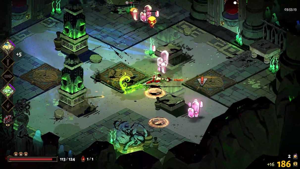 Возможно, он имеет больше урона, но за счет затяжных анимаций играется он куда хуже. А все касты, даже турели Деметры превращаются в ауешки вокруг Загрея. Это прикольно с одной стороны, но, например, касту Артемиды куда приятнее кастовать с расстояния. Наиболее приятным кастом мне показались пилы Ареса. Они имеют увеличенный радиус и отличный урон.