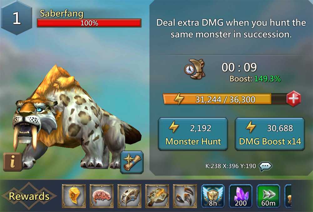 Тип урона: физический Мротив: мощный и непредсказуемый, Саблезубый Клык сеет хаос в ваших рядах. Используйте магию, чтобы уничтожить его, прежде чем он уничтожит ваши войска! С Саблезубым можно создать отличное продвинутое снаряжение, так что приготовьтесь потратить много энергии на убийство этого монстра.