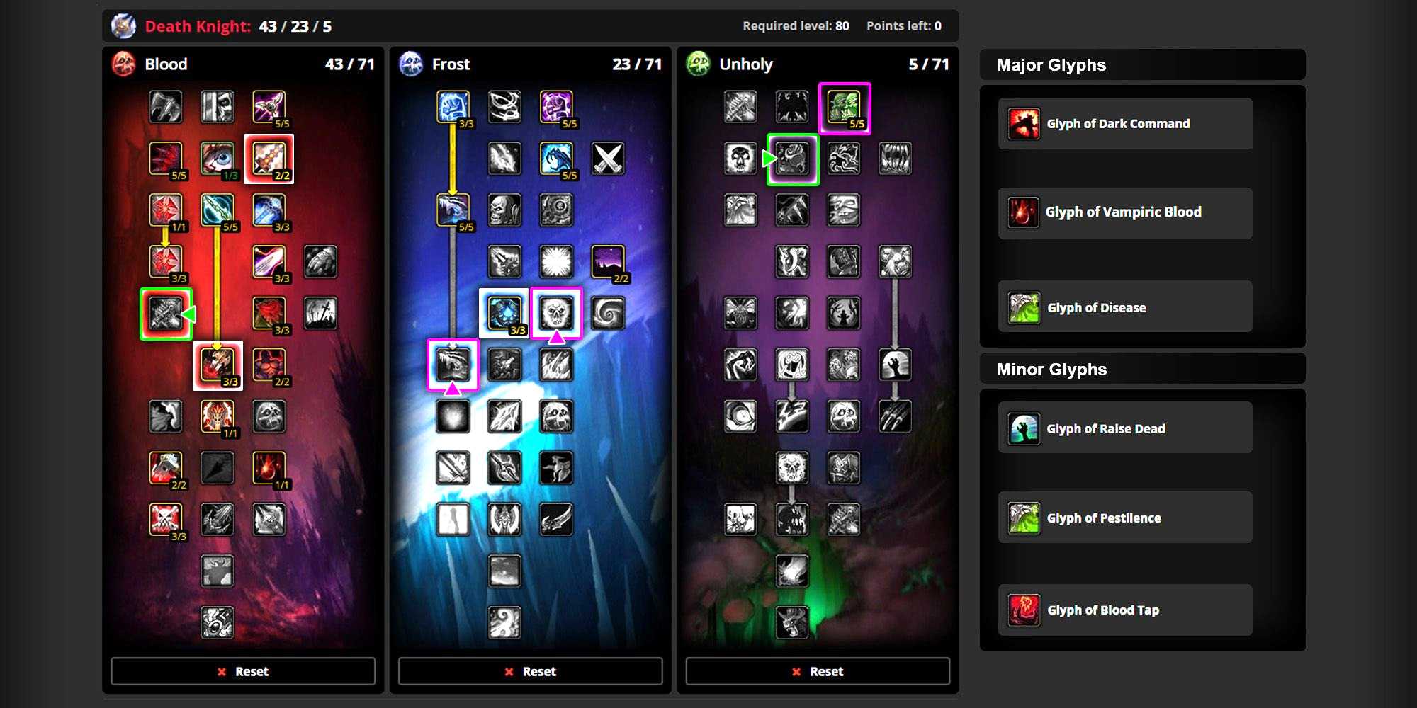 Калькулятор талантов любезно предоставлен https://www.wowhead.com/wotlk/talent-calc/death-knight.