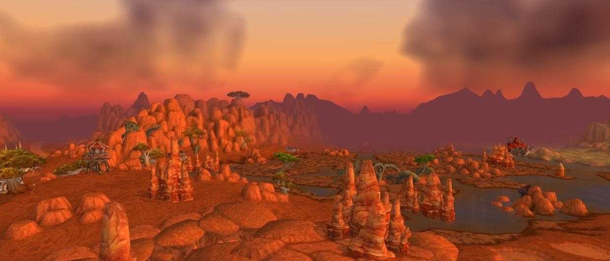 - Пылающие степи (50-59): Пылающие степи располагаются с другой стороны Черной горы. Это еще одна локация с большим диапазоном уровней, в ней есть поселения Орды и Альянса, а также задания, ведущие в подземелье.