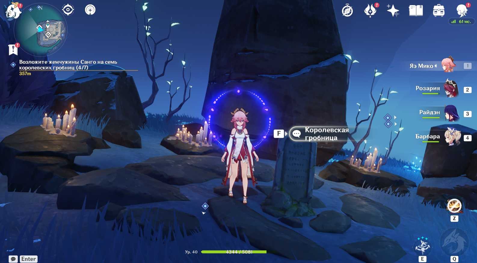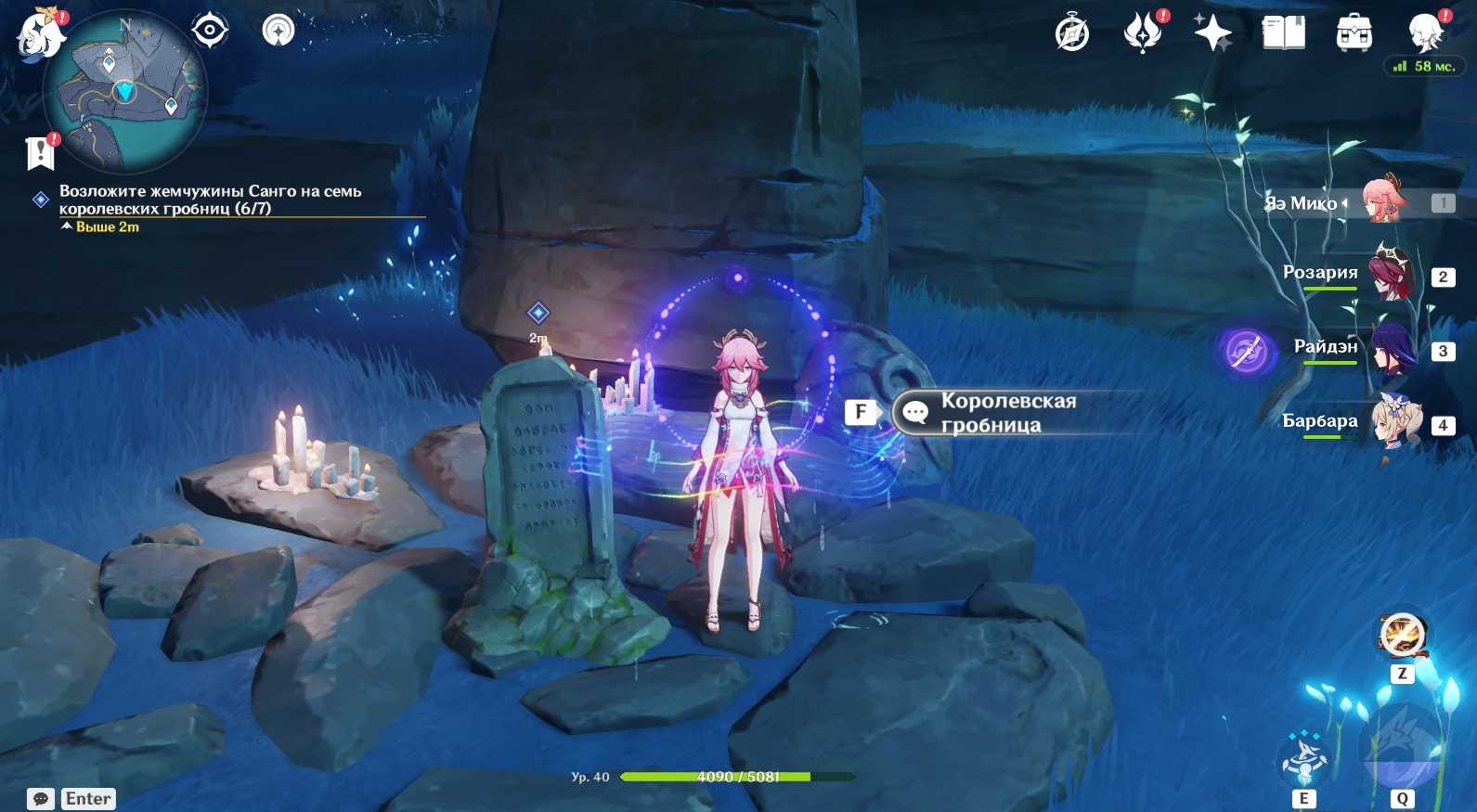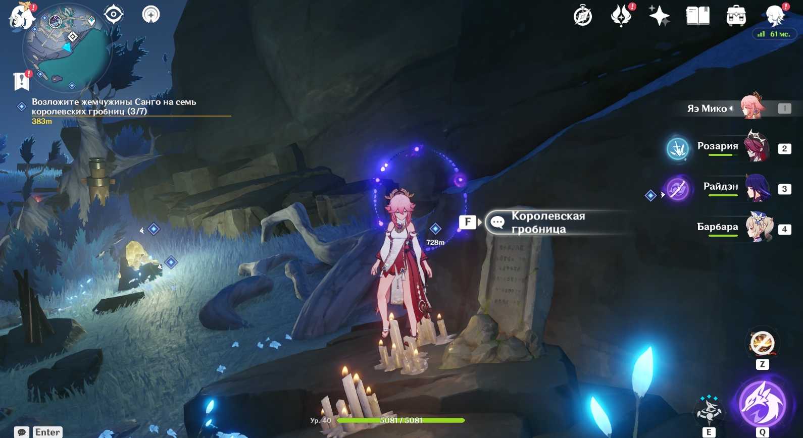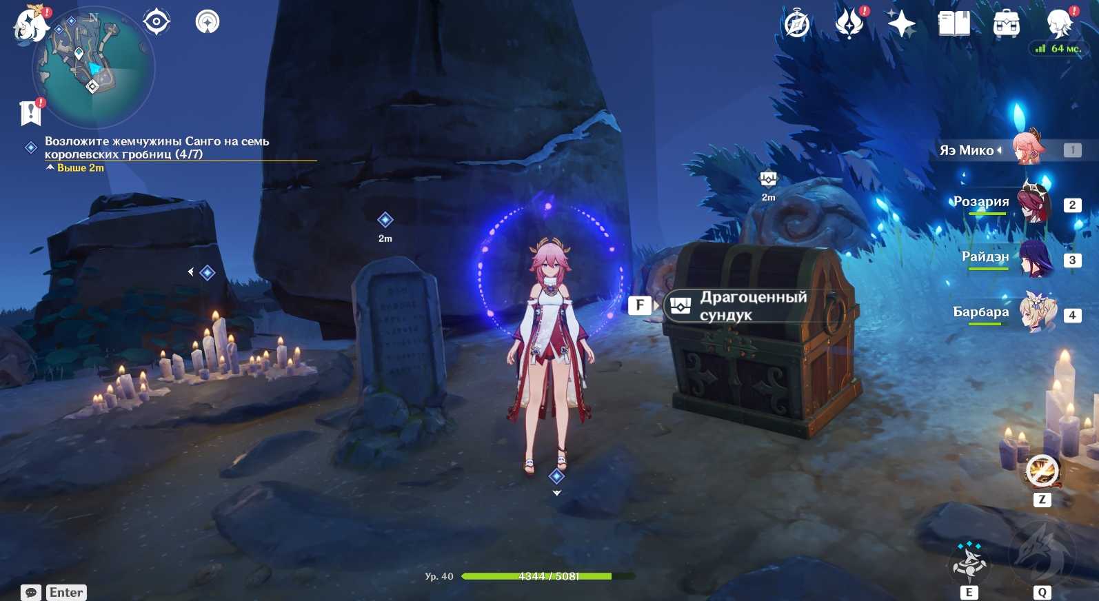 Возле гробницы Ион вас ждет встреча с еще одним Чтец Бездны: Пурпурная молния (Электро). За победу над ним полагается драгоценный сундук. Убейте монстра и сделайте подношение могиле.