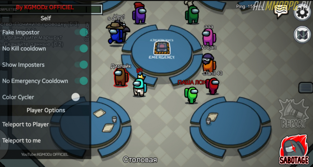 Внимание! Большинство функций в моде Mod Menu by KGMODz на Among Us требуют, чтобы вы были создателем комнаты
