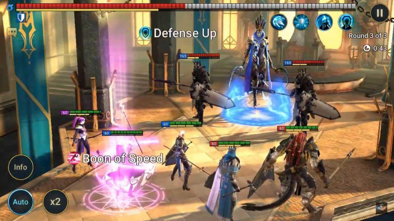 Щит на 3 хода, бафф скорости +30%, атаки +50% и защиту +60%. Сила щита равна максимальному уровню здоровья босса;