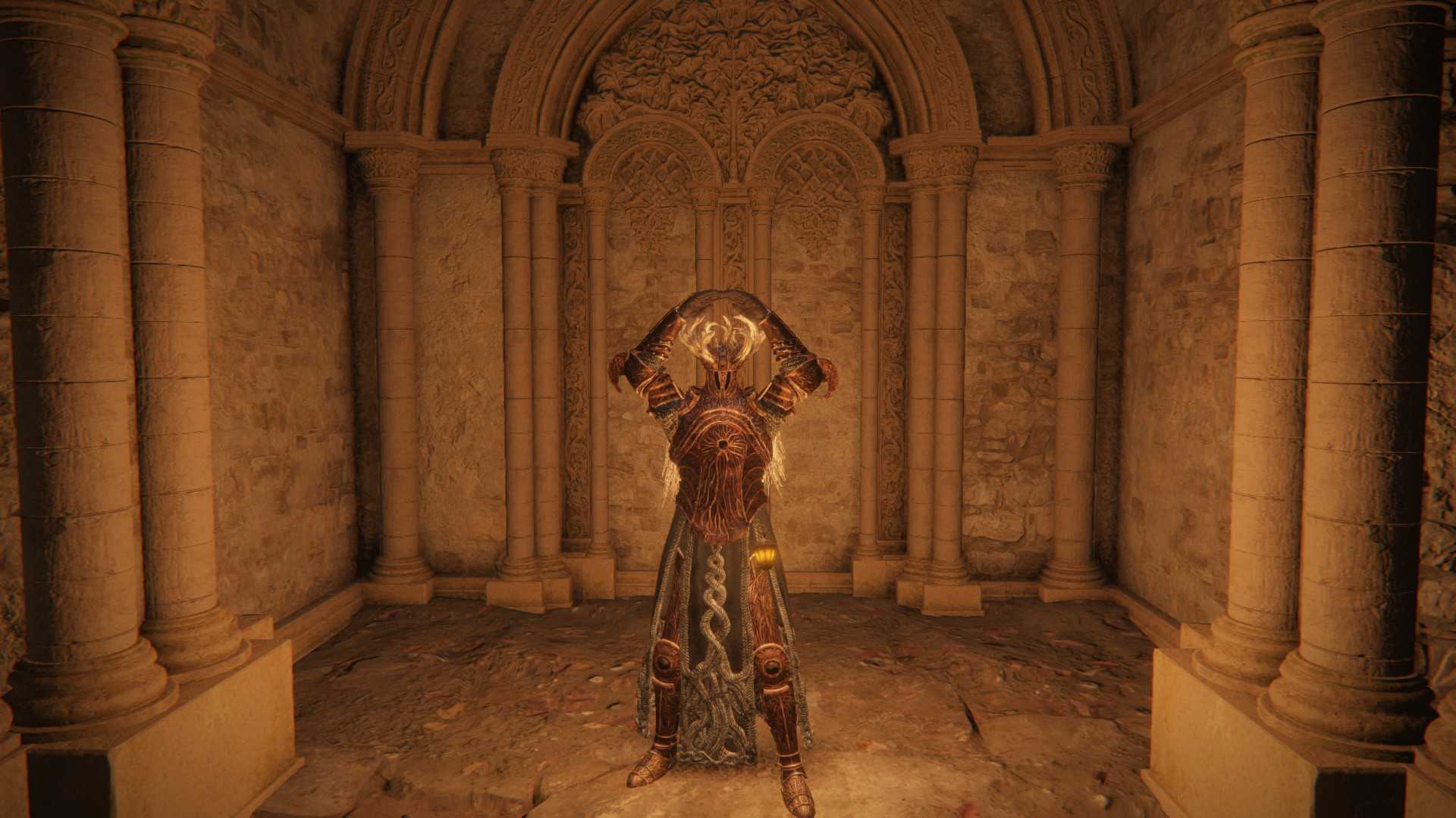 Комплект Старейшины можно получить, пройдя подземелье «Святилище мученика» (Martyr’s Sanctuary). Речь идет о случайно появляющейся локации, до которой можно добраться через «Убежище Разорителя». Чтобы завершить подземелье, вам нужно будет пережить осаду, пока открывается дверь волка. Как только это произойдет, пройдите внутрь и заберите сет.