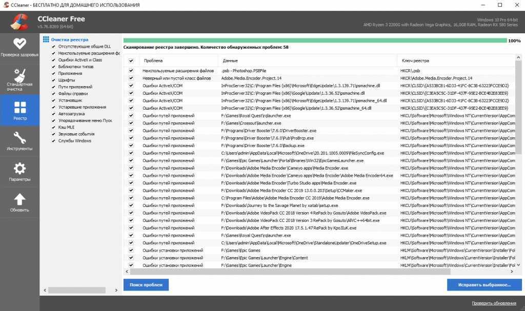 Установленные игры и программы после удаления оставляют после себя горы цифрового мусора. Обилие мусорных файлов замедляет жесткий диск и, как следствие, игры, на нем установленные. То же касается и реестра, в котором остаются всевозможные ошибки. Чтобы избавиться от всего этого, воспользуйтесь условно бесплатной программой CCleaner.