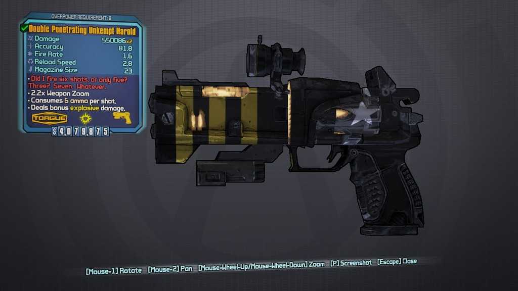 Отличный пистолет. Хотя можно назвать его дробовиком из-за его большого количества пуль за выстрел. Ну и теперь приступим к фарму нашего Гарольда.