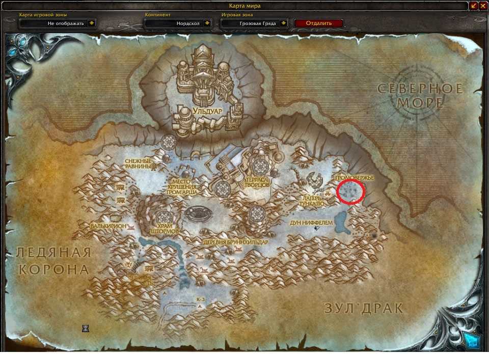 Спокойные мамонты – (60, 60). Осколки Вечной Мерзлоты (55, 64) (см. скриншот ниже). Осколки находятся в том месте, где вы суммонили Жормуттара.