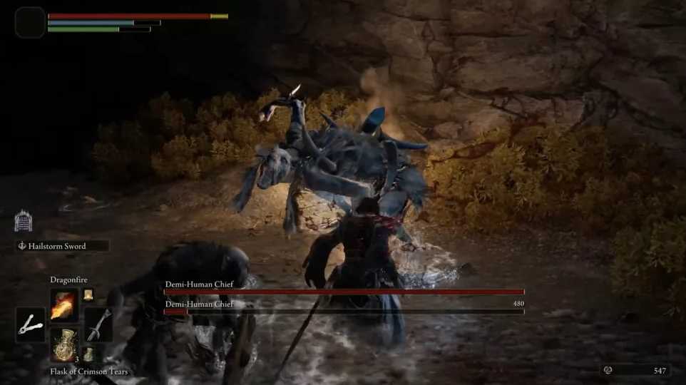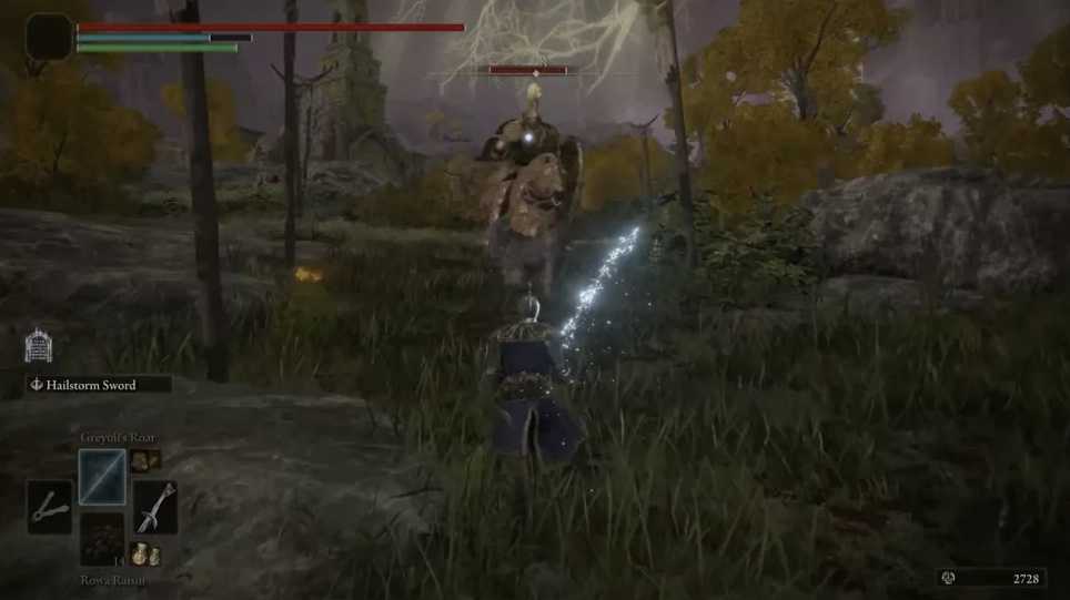 Если вы играете в билде ближнего боя, можете сражаться верхом на Потоке, чтобы иметь преимущество в скорости перемещения. Наносите боссу удары оружием, пробегая мимо него на лошади. Повторяйте прием до победного конца, имея в виду следующее.