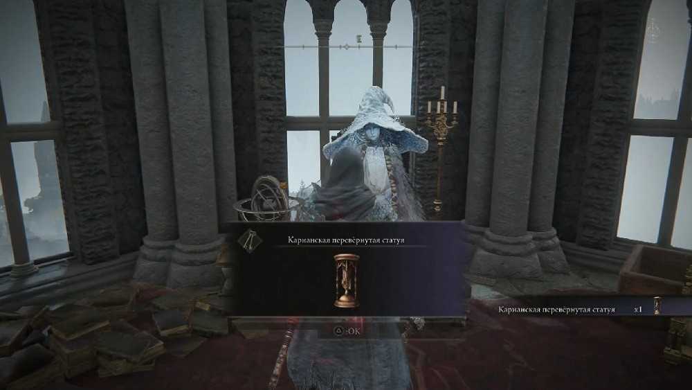 Возвращаемся в башню Ренни и говорим с ведьмой. Она даст вам артефакт «Карианская перевернутая статуя». Этот предмет необязателен для прохождения цепочки Ренни, однако именно он открывает альтернативную концовку игры.