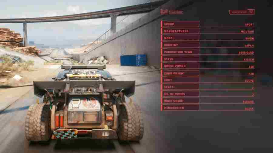 Обратитесь к списку всех представительских автомобилей в CP 2077 с их подробной статистикой