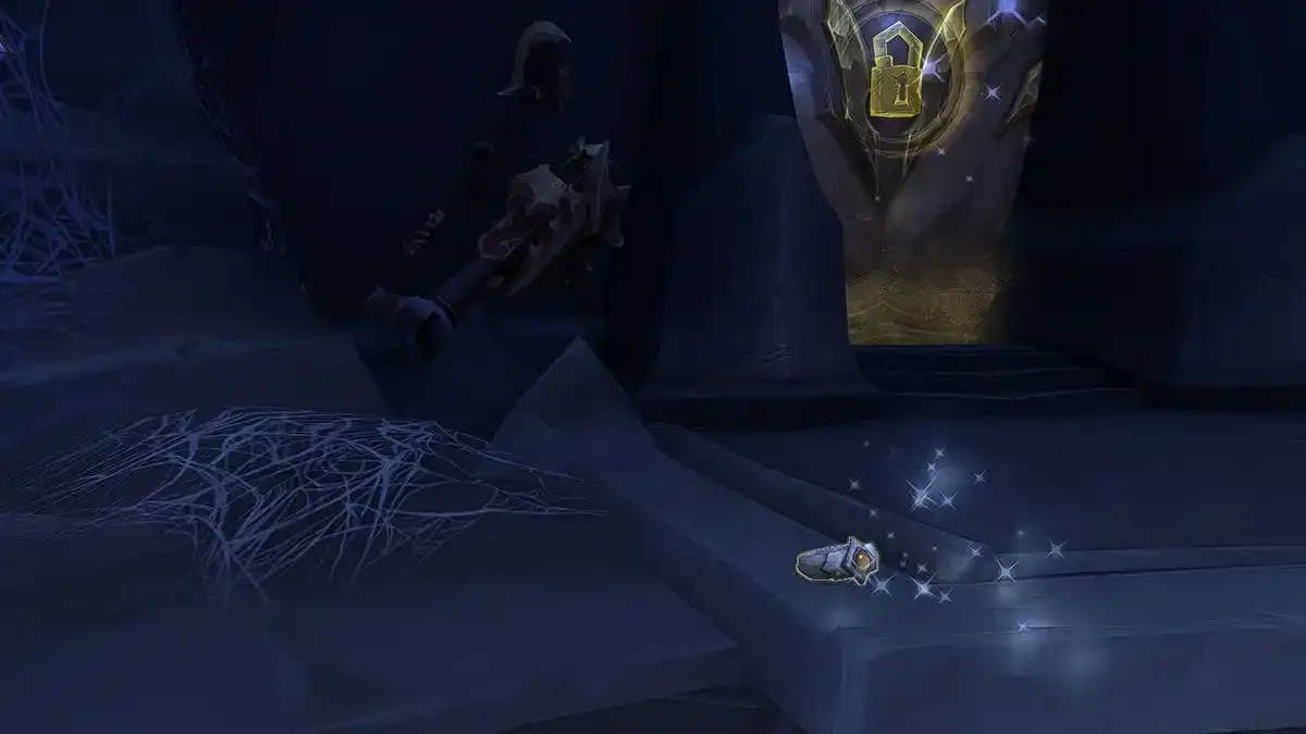 Надевайте Тенетканую маску на персонажа – и вы сможете взаимодействовать с черепом, что лежит на стуле. Если не получается сразу, попробуйте перезайти в игру – обычно это помогает.
